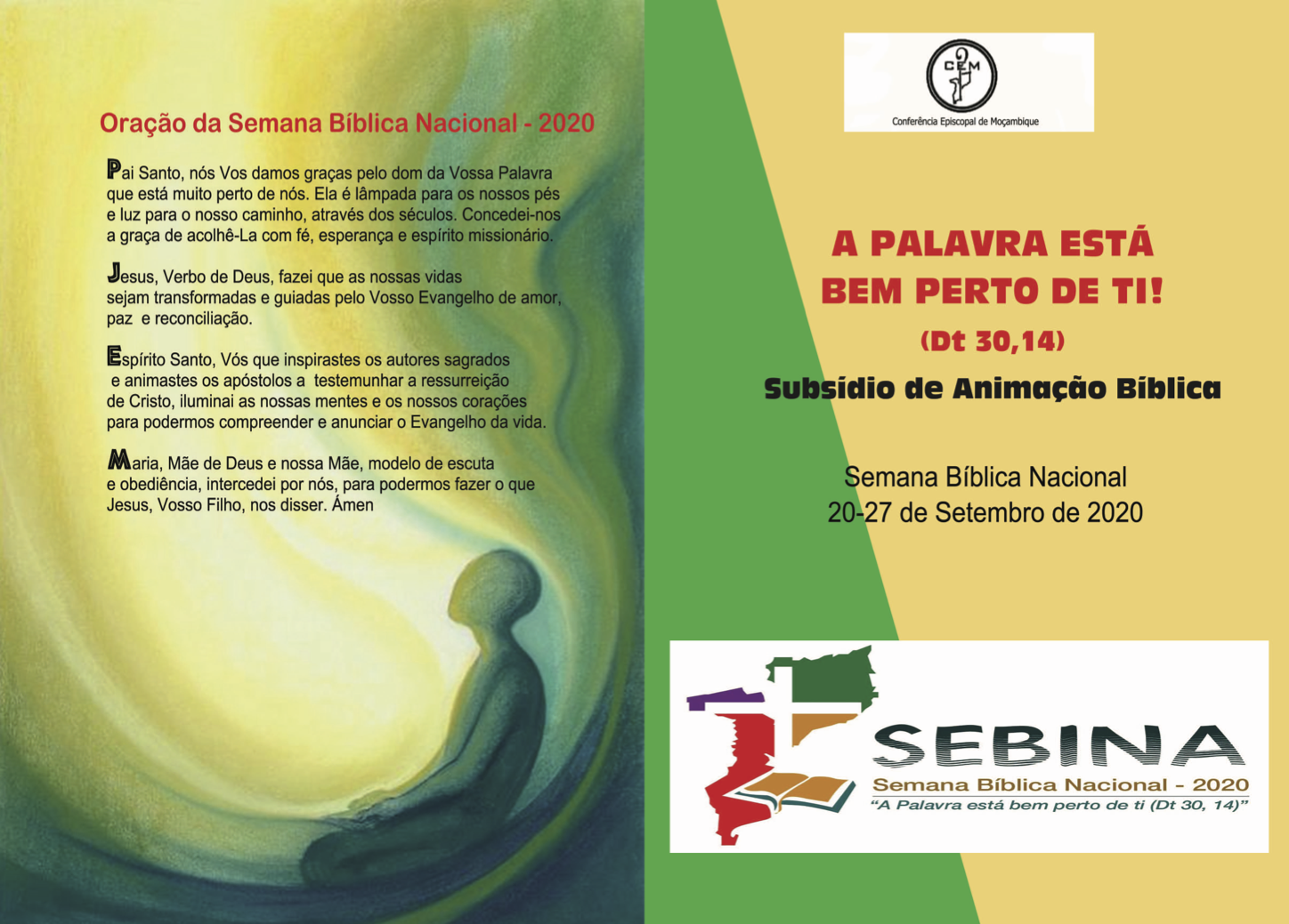 The Episcopal Commission for Biblical Pastoral of the Episcopal Conference of Mozambique has organised a National Bible Week (SEBINA) from 20 to 27 September 2020 for all Archdioceses, Dioceses, Parishes, Religious Communities, under the slogan: The Word is near you (Dt 30:14).