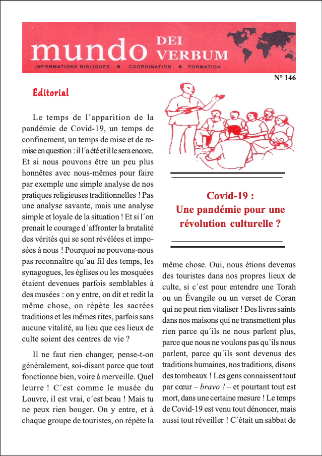 Bulletin Dei Verbum is published by the General Secretariat of the Catholic Biblical Federation. As a forum for reflection on issues in biblical pastoral ministry, Bulletin Dei Verbum publishes academic contributions, reports on projects and experiences of individual member organisations and CBF subregions, informs about Federation news and provides information concerning recent publications in the field. It appears twice a year in English, French, German and Spanish.