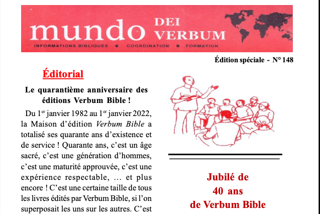 Le numéro 149 du Bulletin “mundo DEI VERBUM” de la République Démocratique du Congo a été publié.